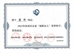 ■2023-10-09 我公司蔣偉榮獲2023年 濱州市企業(yè)“創(chuàng)新達(dá)人”榮譽(yù)稱號(hào)
