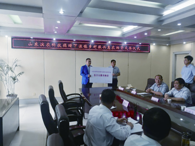 我公司向沾化縣下洼鎮(zhèn)捐贈(zèng)5萬(wàn)元鄉(xiāng)村振興惠農(nóng)物資發(fā)布時(shí)間:2019-06-04 10:56本報(bào)訊 為加強(qiáng)鎮(zhèn)企合作,實(shí)現(xiàn)組織聯(lián)建、黨員互動(dòng)、資源共享、優(yōu)勢(shì)互補(bǔ),助力實(shí)施鄉(xiāng)村振興戰(zhàn)略,5月10日,我公司與下洼鎮(zhèn)“鎮(zhèn)企互聯(lián),結(jié)對(duì)共建”活動(dòng)隆重舉行。省派沾化下洼鎮(zhèn)鄉(xiāng)村振興服務(wù)隊(duì)隊(duì)長(zhǎng)郭桂永,隊(duì)員馬國(guó)慶、王忠坤、許頔,濱州市農(nóng)業(yè)農(nóng)村局黨委委員、市農(nóng)業(yè)綜合執(zhí)法支隊(duì)書記王繼堂,市農(nóng)藥藥檢所所長(zhǎng)劉京濤,市農(nóng)業(yè)農(nóng)村綜合服務(wù)中心主任趙科舉、市農(nóng)業(yè)農(nóng)村綜合服務(wù)中心科長(zhǎng)劉合昌,區(qū)農(nóng)業(yè)農(nóng)村局副局長(zhǎng)房永春,下洼鎮(zhèn)黨委書記郭良詢,中央電視臺(tái)《農(nóng)廣天地》欄目組、濱州電視臺(tái)記者參加了本次活動(dòng),我公司新零售事業(yè)部經(jīng)理助理蔡瑞孝代表公司參加了本次活動(dòng)。 本次活動(dòng)由下洼鎮(zhèn)黨委副書記杜海青主持。首先,下洼鎮(zhèn)黨委書記郭良詢致歡迎辭,表示:“山東濱農(nóng)科技有限公司捐贈(zèng)的這批惠農(nóng)物資,對(duì)下洼鎮(zhèn)冬棗產(chǎn)業(yè)提質(zhì)增效工作意義重大,這不僅是物質(zhì)上的幫助,更是精神上的鼓舞,下洼鎮(zhèn)全體黨員干部將帶著這份深情厚誼在冬棗產(chǎn)業(yè)高質(zhì)量發(fā)展中,在實(shí)現(xiàn)鄉(xiāng)村振興的道路上,履職盡責(zé),穩(wěn)步前進(jìn)。”然后,我公司蔡經(jīng)理簡(jiǎn)要介紹了我公司的生產(chǎn)經(jīng)營(yíng)情況,并表示將繼續(xù)加強(qiáng)與下洼鎮(zhèn)和鄉(xiāng)村振興服務(wù)隊(duì)的合作,共同助力鄉(xiāng)村振興戰(zhàn)略的實(shí)施。隨后,我公司為下洼鎮(zhèn)捐贈(zèng)了價(jià)值五萬(wàn)元的惠農(nóng)物資。 王書記指出,目前鄉(xiāng)村處于轉(zhuǎn)型發(fā)展時(shí)期,中央和省市區(qū)多次出臺(tái)相關(guān)文件和措施支持農(nóng)業(yè)農(nóng)村的發(fā)展,山東濱農(nóng)科技有限公司此次捐贈(zèng)體現(xiàn)了公司對(duì)鄉(xiāng)村振興戰(zhàn)略的重視,奉獻(xiàn)的是產(chǎn)品,體現(xiàn)的是企業(yè)積極擔(dān)當(dāng)社會(huì)責(zé)任的精神。希望今后山東濱農(nóng)科技有限公司與下洼鎮(zhèn)能夠加強(qiáng)對(duì)接,深度融合,不斷加快冬棗產(chǎn)業(yè)轉(zhuǎn)型升級(jí),促進(jìn)產(chǎn)業(yè)高質(zhì)量發(fā)展。 最后,郭隊(duì)長(zhǎng)強(qiáng)調(diào),此次活動(dòng)充分體現(xiàn)了濱州市農(nóng)業(yè)農(nóng)村局、濱農(nóng)科技對(duì)下洼鎮(zhèn)和鄉(xiāng)村振興服務(wù)隊(duì)工作的重視和支持。下一步,鄉(xiāng)村振興服務(wù)隊(duì)將繼續(xù)按照省委省政府的統(tǒng)一部署,以打造鄉(xiāng)村振興齊魯樣板為目標(biāo),為濱農(nóng)科技和下洼鎮(zhèn)搭建平臺(tái),共同努力,為助推實(shí)施鄉(xiāng)村振興戰(zhàn)略、打造鄉(xiāng)村振興齊魯樣板做出貢獻(xiàn)。捐贈(zèng)儀式結(jié)束后,蔡經(jīng)理在棗園就冬棗種植技術(shù)與棗農(nóng)進(jìn)行了交流與探討,并詳細(xì)解答了棗農(nóng)遇到的技術(shù)難題。 通過(guò)本次捐贈(zèng)及交流活動(dòng),進(jìn)一步提升了濱農(nóng)科技在沾化棗農(nóng)心中的品牌形象,為公司產(chǎn)品更好地切入市場(chǎng)打下了堅(jiān)實(shí)的基礎(chǔ)。