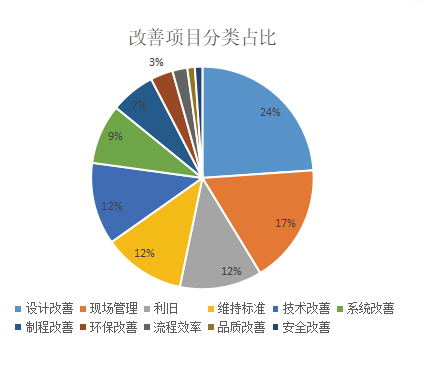 9月11日,精益改善辦組織開(kāi)展了8月份精益改善現(xiàn)場(chǎng)和線上發(fā)表會(huì),共41個(gè)部門(mén)參加了發(fā)表。8月份各部門(mén)改善項(xiàng)目共92項(xiàng),其中設(shè)計(jì)改善占比達(dá)24%,本項(xiàng)改善傾向于新設(shè)備的引進(jìn)、新方法的使用、自動(dòng)化聯(lián)鎖的使用、工藝過(guò)程的革新;體現(xiàn)了各部門(mén)立足業(yè)務(wù)流程,解決根本問(wèn)題的立足點(diǎn);系統(tǒng)改善重點(diǎn)體現(xiàn)在流程再造及固化、表單優(yōu)化、信息資源整合等方面的改善。本月利舊改善項(xiàng)目約12.89萬(wàn)元,也體現(xiàn)了各部門(mén)響應(yīng)公司修舊利廢號(hào)召的積極性。改善中占比最高的為設(shè)計(jì)類(lèi)改善,設(shè)計(jì)改善傾向于新設(shè)備的引進(jìn)、新方法的使用、自動(dòng)化聯(lián)鎖的使用、工藝過(guò)程的革新;系統(tǒng)改善重點(diǎn)體現(xiàn)在流程再造及固化、表單優(yōu)化、信息資源整合等方面的改善。
