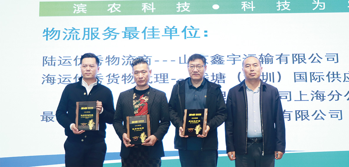 會(huì)上,物流部主任謝云東誠(chéng)摯歡迎承運(yùn)商參會(huì),并感謝長(zhǎng)期以來(lái)對(duì)公司的支持。物流部主管詳細(xì)匯總并分析了陸運(yùn)運(yùn)輸過程中出現(xiàn)的各類問題,并提出了相應(yīng)的解決方案,同時(shí)對(duì)下一步運(yùn)輸提出了更高要求。海運(yùn)訂艙專員介紹了對(duì)海運(yùn)工作具體情況,對(duì)比分析了出口數(shù)據(jù),對(duì)各合作貨運(yùn)代理進(jìn)行了評(píng)價(jià)并提出了針對(duì)性要求。謝主任從濱農(nóng)的生產(chǎn)經(jīng)營(yíng)情況、物流主要工作、存在的問題及改進(jìn)措施、下一步工作計(jì)劃等四個(gè)方面進(jìn)行了全面解讀,圍繞運(yùn)輸效率提升、成本控制、服務(wù)質(zhì)量?jī)?yōu)化等多個(gè)方面提出了具體要求,為后續(xù)合作明確了方向;此外,依據(jù)承運(yùn)商年度合作評(píng)價(jià)標(biāo)準(zhǔn)對(duì)所有物流商進(jìn)行了評(píng)分展示,最終,山東鑫宇運(yùn)輸有限公司榮獲“陸運(yùn)優(yōu)秀物流商”,錢塘(深圳)國(guó)際供應(yīng)鏈管理有限公司上海分公司榮獲“海運(yùn)優(yōu)秀貨物代理”,山東華業(yè)物流有限公司獲評(píng)“最佳進(jìn)步物流商”。業(yè)務(wù)跟單服務(wù)部經(jīng)理張倩結(jié)合當(dāng)前國(guó)際形勢(shì)對(duì)出口業(yè)務(wù)的影響,對(duì)貨運(yùn)代理提出了專業(yè)詳細(xì)要求,以確保貨物安全高效出運(yùn)。最后,副總經(jīng)理郭安勇深刻剖析了宏觀經(jīng)濟(jì)形勢(shì)及行業(yè)競(jìng)爭(zhēng)態(tài)勢(shì),結(jié)合濱農(nóng)“雙百目標(biāo)”,與承運(yùn)商展望合作前景,明確責(zé)任與義務(wù),共同追求服務(wù)質(zhì)量的提升。