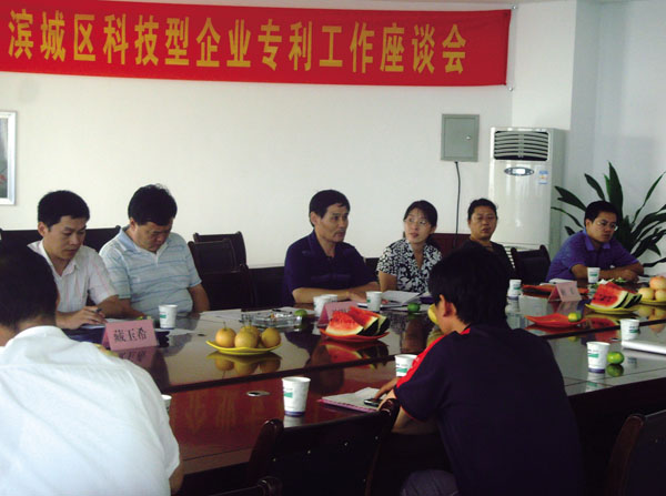 2009年8月27日下午,由濱城區(qū)科技局、濱州市專利局聯合主辦的濱州市科技型企業(yè)專利座談會在我銷售公司三樓會議室召開。會議由濱城區(qū)科技局局長孫明亮主持,濱州市知識產權局副局長崔金光做總結。來自濱州市的18家科技型企業(yè)和貿易公司的代表參加了此次會議。我公司科研所所長徐家俊針對高科技專利產品在市場上的巨大優(yōu)勢做了詳細論述。